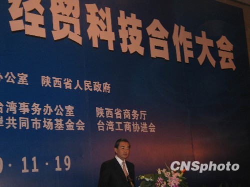 中國國務院臺辦主任王毅十九日在西安出席海峽兩岸(陜西)經貿科技合作大會。該活動以“推進陜臺產業合作,實現兩岸共同繁榮”為主題,有來自兩岸學者和工商界人士四百多人參會。圖為王毅在開幕式上致辭。 中新社發 冽瑋 攝