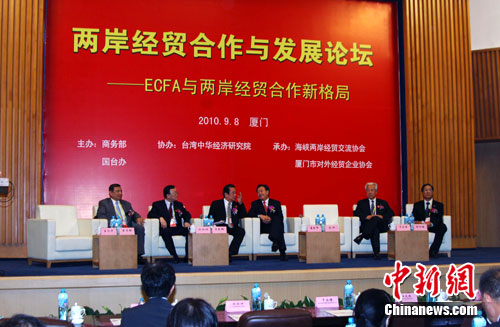 由中國國家商務部、國務院臺辦主辦的第五屆兩岸經貿合作與發展論壇,8日下午在廈門國際會展中心國際廳舉行,兩岸學術界和工商界知名人士圍繞“ECFA與兩岸經貿合作新格局”的主題進行深入探討。