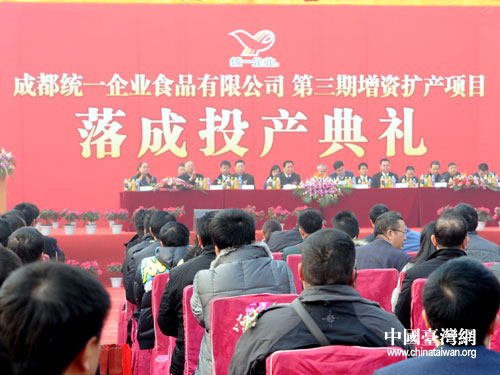 成都統一企業食品有限公司第三期增資擴產項目落成投產典禮現場。圖片來源:四川省臺辦
