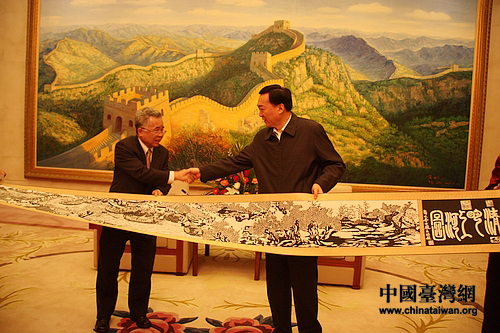“臺灣金融團”帶來的禮物是金箔版“清明上河圖”。(中國臺灣網記者 馬迪 攝)