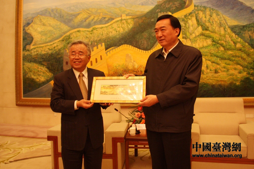 11月29日,河北省省長陳全國(右)會見臺灣金融服務業聯合會總會理事長許嘉棟為首的“臺灣金融團”。(中國臺灣網記者 馬迪 攝)