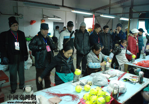 中國臺灣網12月29日黔南消息 日前,貴州黔南州開展“黔南·臺灣兩地職業教育交流活動”。臺灣職業教育交流團團長、臺東高級商業職業學校校長、臺東教育理事長江銘鉦校長、主任一行,在州臺辦張榮周副主任的陪同下到獨山縣潤揚運動器材有限公司參觀考察。(中國臺灣網、黔南州臺辦聯合報道)