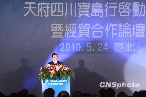 5月24日,“天府四川寶島行”在臺北啟動,率團訪臺的中共四川省委書記劉奇葆出席啟動儀式并作主題演講。 中新社發 羅欽文 攝
