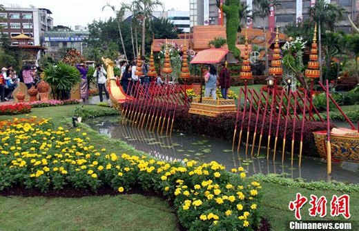 臺北花博會11月6日開園,泰國園藝機構設計布置的庭園作品吸引了不少參觀者。中新社發 王健 攝
