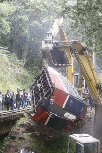 報道說,阿里山神木線小火車4月27日行駛中遭斷裂枝干砸中,導(dǎo)致4節(jié)車廂翻覆,造成5名大陸游客罹難、100多人受傷。臺灣“林務(wù)局”嘉義林區(qū)管理處5日上午為5名罹難者舉行聯(lián)合公祭。