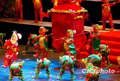 北京藍天兒童藝術團7月28日晚在臺北進行公益演出,所得善款將全部捐獻給臺南災區。演出的歌舞劇《十二吉祥》以中華民族傳統生肖文化為主題,展示濃郁的中華民族傳統風情和燦爛不息的民族文化底蘊。 中新社發 宋吉河 攝