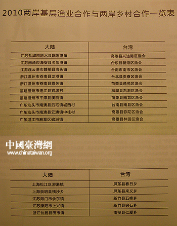 第二屆兩岸鄉村座談是兩岸第一次以漁業合作為主題,展開基層大規模直接交流。大陸10個以漁業為主的鄉村與臺灣10個漁區的漁會簽署了合作協議,結為對子。其中,簽協議的臺灣漁區占到了當地漁區的四分之一。