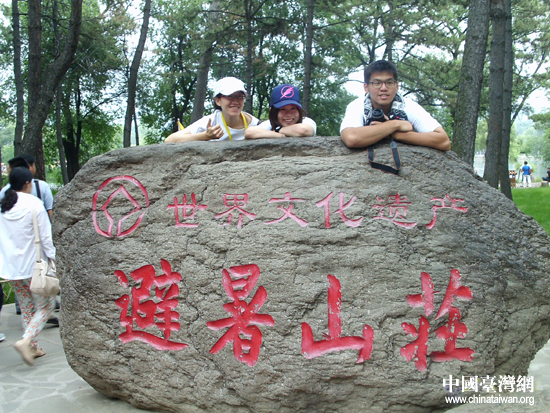 臺胞青年千人夏令營成員在在承德避暑山莊石碑前合影。(中國臺灣網 王新妍 攝)