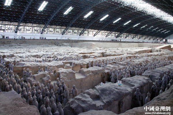 目前挖掘出的規模最大的秦始皇兵馬俑一號坑。(中國臺灣網 芮益芳 攝)