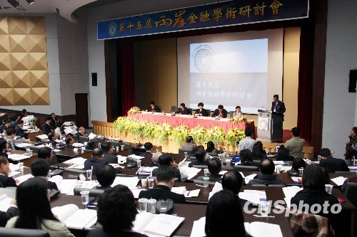 12月1日,為期兩天的第15屆兩岸金融學(xué)術(shù)研討會在臺北舉行,以“面對兩岸新局,兩岸金融合作的亮點與契機”為主題,進行專題演講、分組座談和綜合研討。兩岸于上月中簽署金融備忘(MOU),加上有兩岸重量級金融部門官員參會,本次研討會廣受媒體關(guān)注。 中新社發(fā) 黃少華 攝