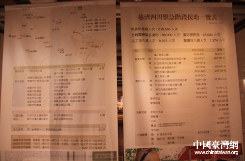 慈濟四川緊急階段援助一覽表(中國臺灣網 王文英 攝)