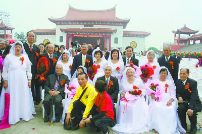 兩岸金婚夫婦在祖廟前合影 圖片來源:福建日報