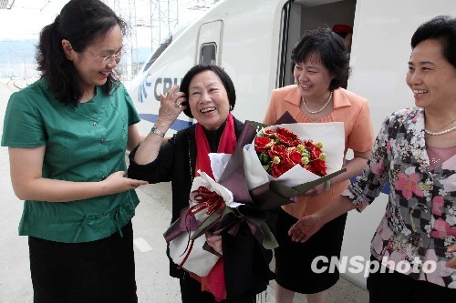 6月21日,臺灣中華婦聯總會主任委員辜嚴倬云女士在福建省婦聯領導的陪同下,乘動車從廈門回到闊別73年的家鄉福州,受到福州市委統戰部、市臺辦、市婦聯官員的熱烈歡迎。 中新社發 楊婀娜 攝