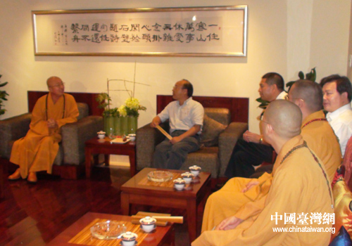 中國臺灣網(wǎng)8月11日舟山消息 8月10日,臺灣中華護(hù)僧協(xié)會榮譽(yù)理事長釋傳孝和南海觀音文教基金會會長吳天池,赴浙江省舟山市普陀山參加了普濟(jì)寺道慈大和尚升座法會。期間,與舟山市委副書記、市長周國輝進(jìn)行了會面,并著重圍繞“千人護(hù)千佛、慈航寶島行”為主題的佛教文化交流事宜進(jìn)行了具體的交流磋商。