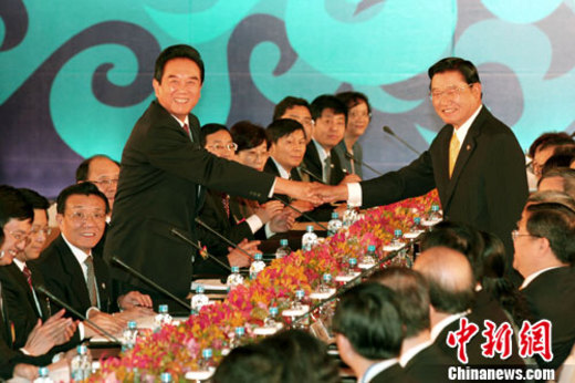 兩岸兩會(huì)領(lǐng)導(dǎo)人第6次會(huì)談今天(21日)在臺(tái)北展開(kāi),臺(tái)灣海基會(huì)董事長(zhǎng)江丙坤贊揚(yáng)過(guò)去兩年半以來(lái),與大陸海協(xié)會(huì)簽署了14項(xiàng)協(xié)議,在保障兩岸人民權(quán)益、建構(gòu)正常交流秩序、促進(jìn)兩岸經(jīng)貿(mào)領(lǐng)域合作等方面,產(chǎn)生立竿見(jiàn)影的效果。