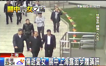 關中與夫人張惠君及相關幕僚一行共4輛車,5日下午出現在關云娣上海住處,夫人張惠君雖戴著墨鏡,但仍遮不住哀傷神情;關中則由幕僚和友人攙扶步行下車,走入關云娣的住宅大廈。