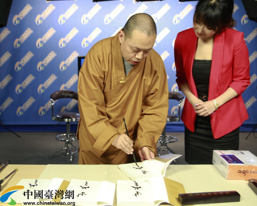 延參法師為新書簽名(中國臺灣網 王偉 攝)
