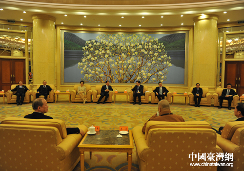 郭金龍會見由連戰(zhàn)率領(lǐng)的臺灣各界人士參訪團一行。(北京通訊員 孟福祥 攝)