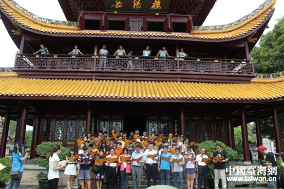 中國臺灣網7月24日岳陽消息 “慶歷四年春 滕子京謫守巴陵郡 越明年 政通人和 百廢俱興 乃重修岳陽樓……”古樸厚重的岳陽樓前,岳臺兩地百名青年莊重列隊,齊聲誦讀千古名篇——《岳陽樓記》,由共青團岳陽市委、岳陽市青聯承辦的“第八屆兩岸青年聯歡節”岳陽行活動日前在岳陽樓前舉行。臺灣國際青商總會會長郭鴻輝率領20多名企業家和50多名青年學子參加活動。