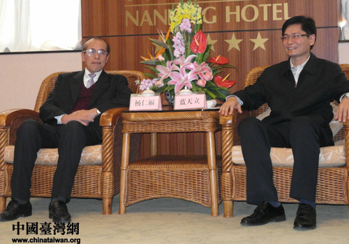 中國臺灣網3月26日南寧消息 3月25日,廣西壯族自治區副主席藍天立在南寧會見由臺灣民意代表楊仁福先生率領的臺灣花蓮縣少數民族參訪團一行。
