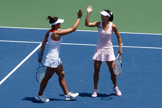 晏紫與莊佳容賽后擊掌相慶