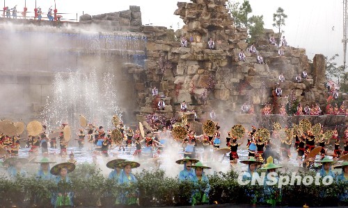 圖為經過精心編排的大型采茶舞亮相第三屆海峽兩岸茶博會。中新社發 王東明 攝