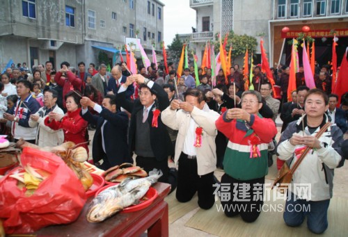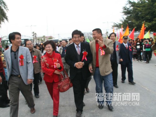 由臺灣嘉義市天后宮董事長蕭鎮(zhèn)煌(蕭萬長的堂弟)帶領(lǐng)下的“參訪團(tuán)”一行20人,正在福建東山島康美鎮(zhèn)銅缽村開展為期5天的“大平安節(jié)”(俗稱豐收節(jié))參訪活動。(謝漢杰 攝)