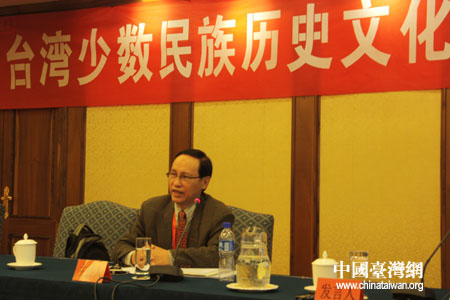 12月23日上午,臺灣少數(shù)民族歷史文化學(xué)術(shù)研討會在北京舉行,臺灣少數(shù)民族教授協(xié)會理事長蔡中涵主持發(fā)言。(中國臺灣網(wǎng) 徐麗華 攝)