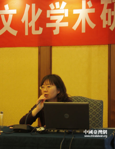 中國社科院文學(xué)研究所臺港澳文學(xué)與文化研究室副研究員李娜發(fā)言(中國臺灣網(wǎng) 徐麗華 攝)