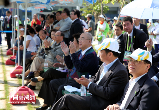 吳伯雄夫婦和蔣孝嚴(yán)夫婦一行13日來到廣東奧林匹克網(wǎng)球中心觀看中華臺(tái)北女子網(wǎng)球隊(duì)的團(tuán)體賽首戰(zhàn)(中國(guó)臺(tái)灣網(wǎng) 鐘寶華 攝)