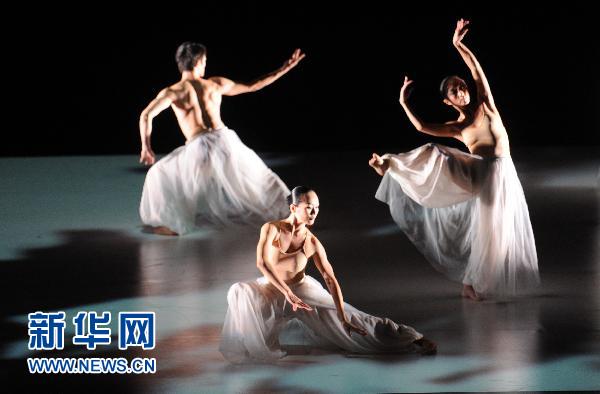 11月18日,臺灣舞蹈團(tuán)體“云門舞集”的舞者在臺北戲劇院舉行的《屋漏痕》彩排記者會上表演。新華社發(fā)(吳景騰 攝)