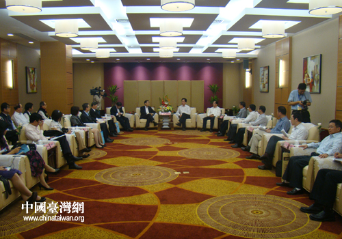 中國臺灣網9月23日湖州消息 9月22日,海基會副董事長兼秘書長高孔廉率海基會訪問團到浙江湖州臺資企業參訪,湖州市人大常委會主任、市委書記孫文友會見并訪問團一行。浙江省臺辦副巡視員王洪興、經濟處副處長王少華,湖州市副市長李建平等領導及部分臺商代表陪同會見。