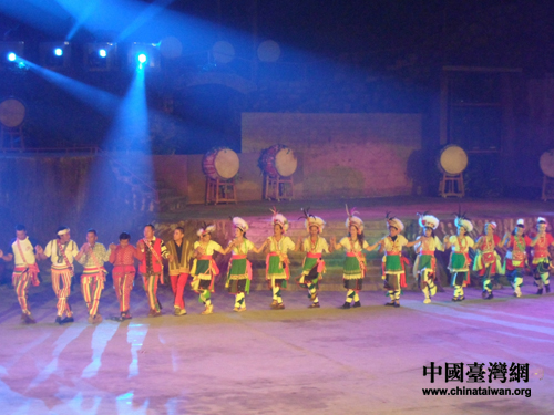 在天下鳳凰森林大劇場,臺灣代表隊表演《豐年舞曲》(圖片來源:湖南省臺辦)