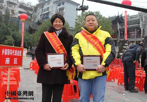 臺屬張青鳳和楊春雷獲獎合影。(圖片來源:鳳凰縣臺辦)