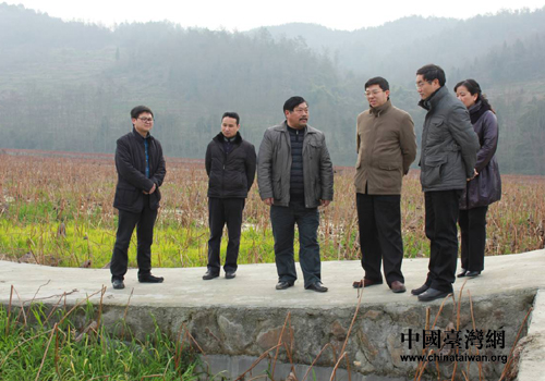 綿陽市臺辦主任陳福林率調研組一行在江油實地考察臺資企業雪藕種植項目。(圖片來源:綿陽市臺辦)