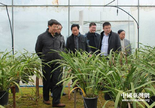 綿陽市臺辦主任陳福林率調研組一行在鹽亭縣臺資企業花卉基地走訪調研。(圖片來源:綿陽市臺辦)