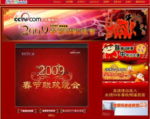 中國臺灣網1月25日消息 臺灣多家媒體在除夕夜對中央電視臺2009年春節聯歡晚會進行了網上直播,兩岸同胞共賞春晚,歡度春節喜迎牛年。