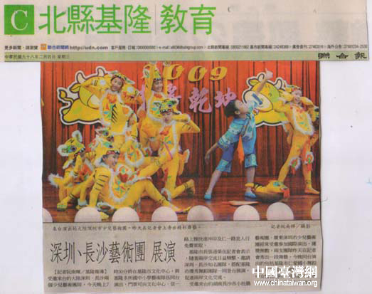 中國臺灣網2月24日消息 “花兒朵朵·賀奧運暨臺灣心·兩岸情第一屆海峽兩岸少兒藝術展演活動”2月2日在臺灣基隆市文化中心演藝廳隆重舉行。