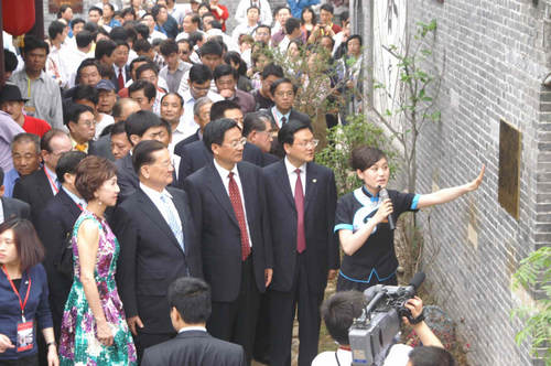 中央臺辦副主任陳元豐,海協(xié)會副會長李炳才,省委副書記、省政協(xié)主席劉偉,省委常委、宣傳部部長李群,中國國民黨榮譽(yù)主席連戰(zhàn)和夫人連方瑀等為泰和樓奠基。山東省委副書記、省政協(xié)主席劉偉在致辭中對棗莊市恢復(fù)重建臺兒莊古城工作給予了充分肯定,他說:“臺兒莊古城的重建是一件很有意義的事情,海峽兩岸交流基地的建設(shè)必將促進(jìn)兩岸關(guān)系的和平發(fā)展。”中國國民黨榮譽(yù)主席連戰(zhàn)則高度評價(jià)了中共棗莊市委、棗莊市人民政府為推動兩岸交流工作所做出的努力,他希望海峽兩岸交流基地深化交流,共同合作。