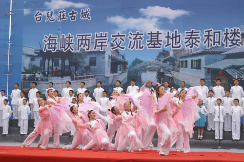 臺兒莊古城是一座二戰(zhàn)遺存最多的抗戰(zhàn)名城,被世人譽(yù)為“中華民族揚(yáng)威不屈之地”。重建后的臺兒莊運(yùn)河古城,將成為世界上繼華沙、龐貝、麗江之后第四座重建的古城。鑒于臺兒莊大戰(zhàn)在海內(nèi)外,特別是在廣大臺灣同胞、海外僑胞中的廣泛影響,2009年12月16日,經(jīng)國臺辦批準(zhǔn),在臺兒莊設(shè)立了國家首個(gè)海峽兩岸交流基地。為進(jìn)一步推動兩岸交流,棗莊市政府在重建臺兒莊古城的同時(shí),規(guī)劃設(shè)計(jì)了這座古城核心區(qū)的標(biāo)志性建筑泰和樓。泰和樓由海峽兩岸知名專家聯(lián)袂設(shè)計(jì),規(guī)劃面積1000平方米,共7層,既反映歷史的漸變與對比,又凸現(xiàn)磨難與戰(zhàn)爭的痕跡,建成后將成為古城一大亮點(diǎn)。
