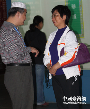 寧夏臺辦主任張秀燕(右)同馮國瑜親切交談 (中國臺灣網 王偉 攝)