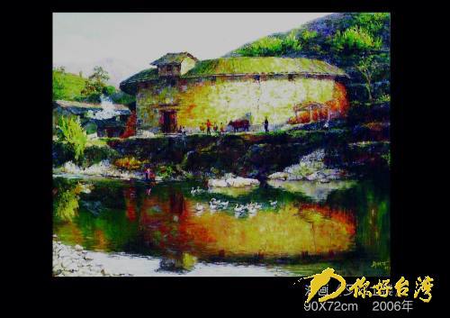 不論油畫還是漆畫,土樓是周榕清創作的一大題材。土樓夕照、土樓晨曦、土樓遺韻,土樓里或悠閑或忙碌的人們以及土樓的春、秋、夏、冬……。漆畫和油畫這兩種原本完全不相融通的中外繪畫語言在他的畫筆里得到有機、和諧的融合,淋漓盡致地表現著土樓的神秘、美麗、純樸和愚智。