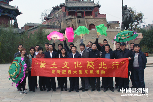“黃土文化陜北行”臺灣記者采風活動一行合影。(中國臺灣網 董潔 攝)