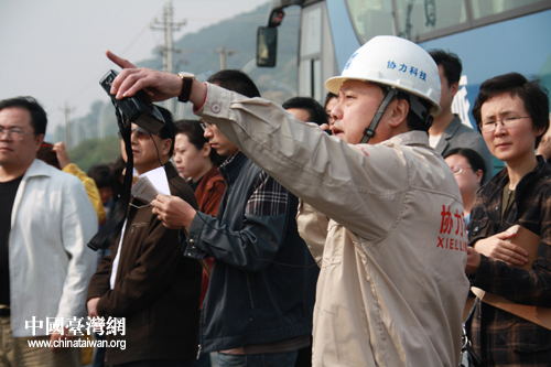 協(xié)力科技產(chǎn)業(yè)園的工作人員正在向記者們介紹園區(qū)的規(guī)劃和建設(shè)。(中國臺灣網(wǎng) 王君飛 攝)