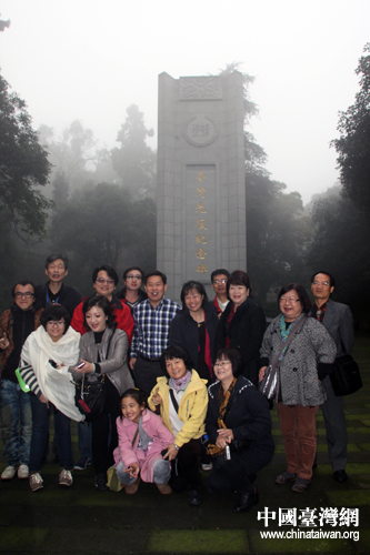 彰化媒體記者參訪團16日至20日參訪重慶,實地感受了重慶的現代都市風貌與發展進步。 圖為參訪團參觀重慶抗戰遺址博物館時,在臺灣光復紀念碑前合影。(中國臺灣網 楊麗 攝)