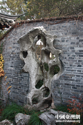 喬園內(nèi)太湖石刻(中國臺灣網(wǎng) 樊玉嬌 攝)