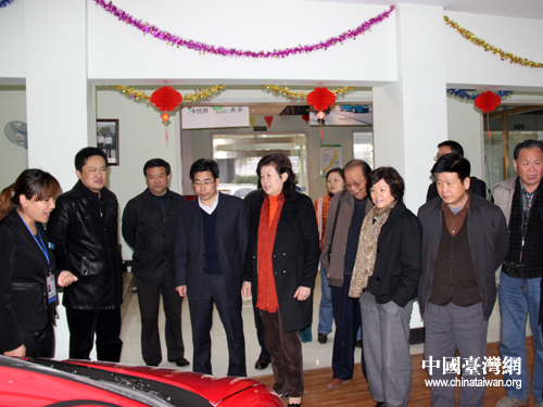 山東省臺辦主任張雪燕在臺屬企業山東旅航商務集團有限公司考察新能源汽車銷售項目(圖片來源:山東省臺辦)