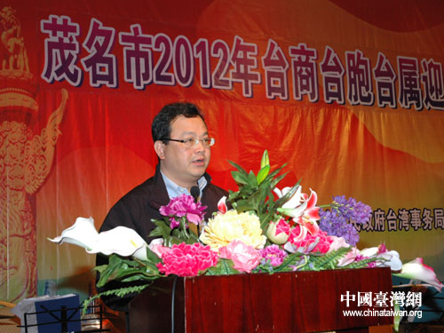 廣東省茂名市臺灣事務局舉行“2012年茂名市臺商、臺胞、臺屬迎春茶話會”。(圖片來源:茂名市臺辦)