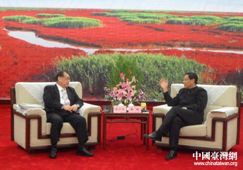 盤錦市市長同臺灣中油公司董事長朱少華座談。(圖片來源:盤錦市臺辦)