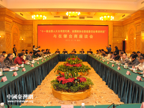 中國臺灣網2月23日肇慶消息 日前,由全國臺聯會長、全國人大常委會委員、華僑委員會副主任委員、中國僑聯副主席梁國揚率領的十一屆全國人大臺灣團代表、全國政協臺聯界別委員赴粵調研團一行30多人到達肇慶市,對肇慶的臺資企業、涉臺工作進行專題調研。